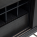 Soria Bar Cabinet pairs a smoked grey wood finish with stainless steel details for a clean, architectural look. The recessed panel façade adds subtle depth, while the elevated base keeps the silhouette light and refined. Designed with generous concealed storage for bottles, glassware, and entertaining essentials.